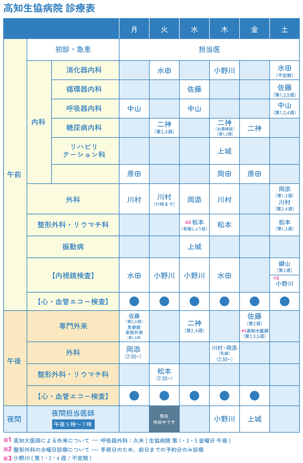 2020年6月より午後休診です (専門外来・外科・整形外科を除く)